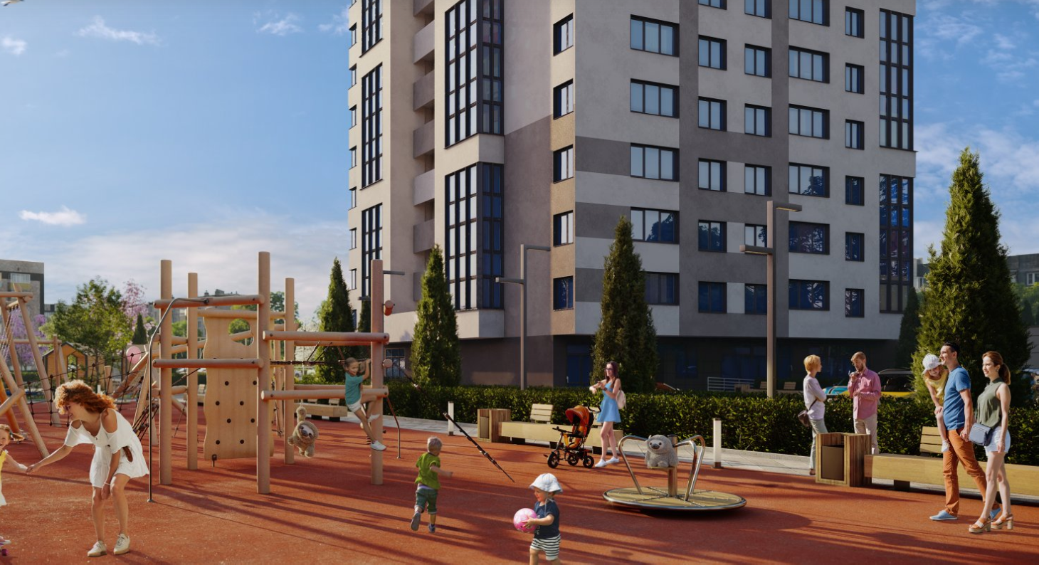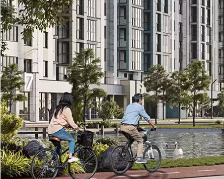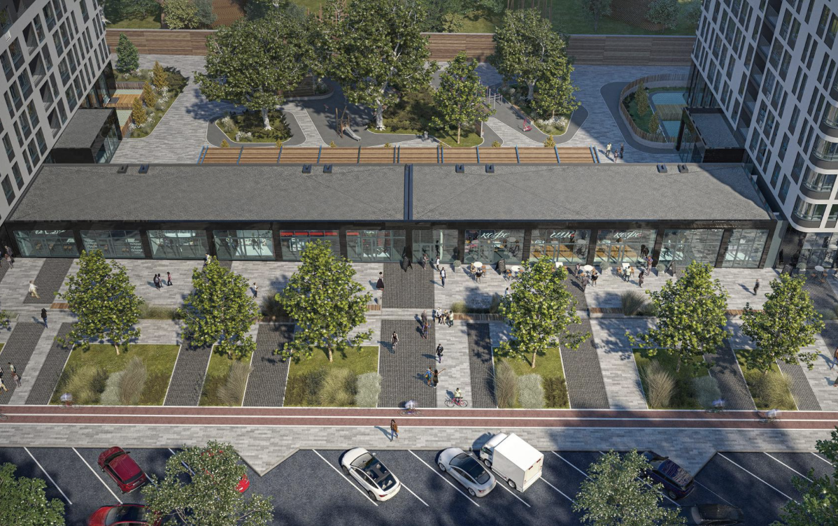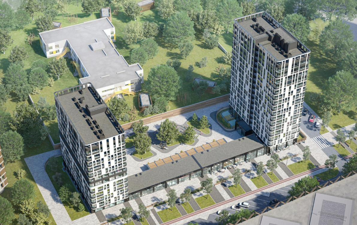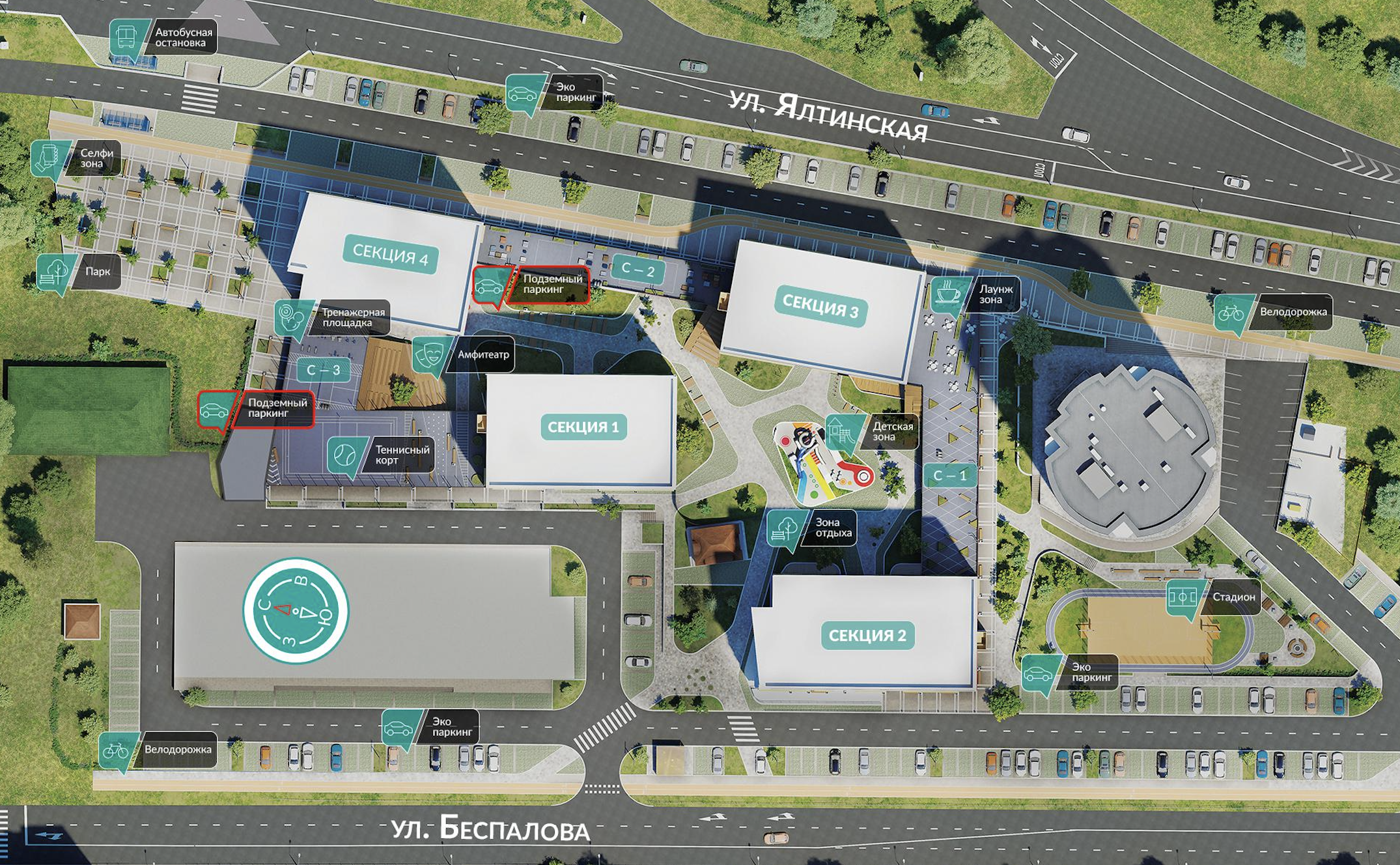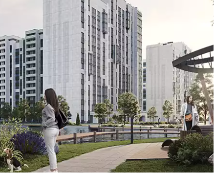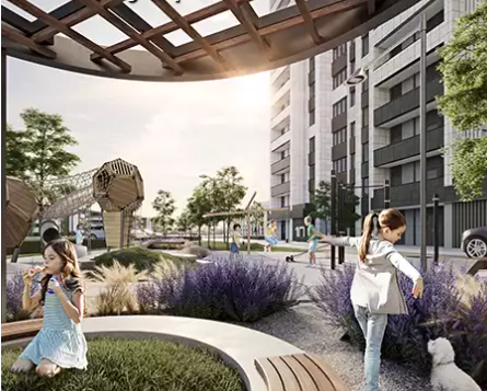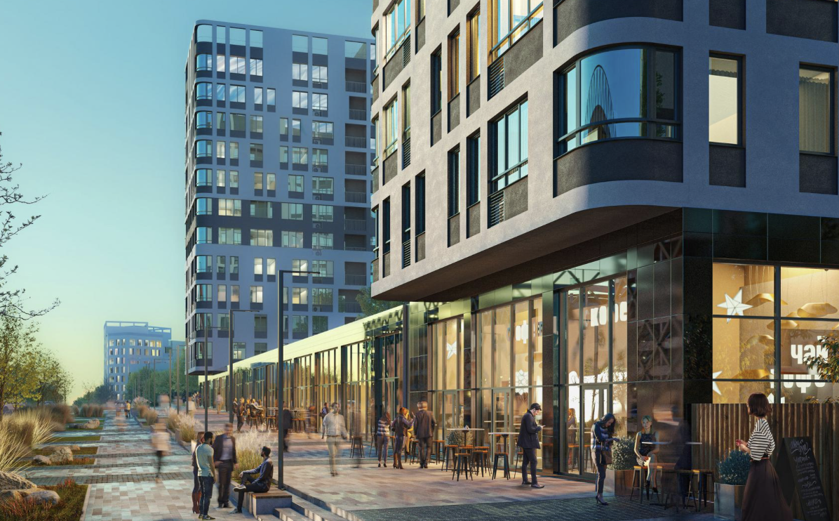 Променадная аллея-парк – доминанта микрорайона. Это главная пешеходная улица, с театральной площадкой, велодорожкой, лаунж и йога зонами.