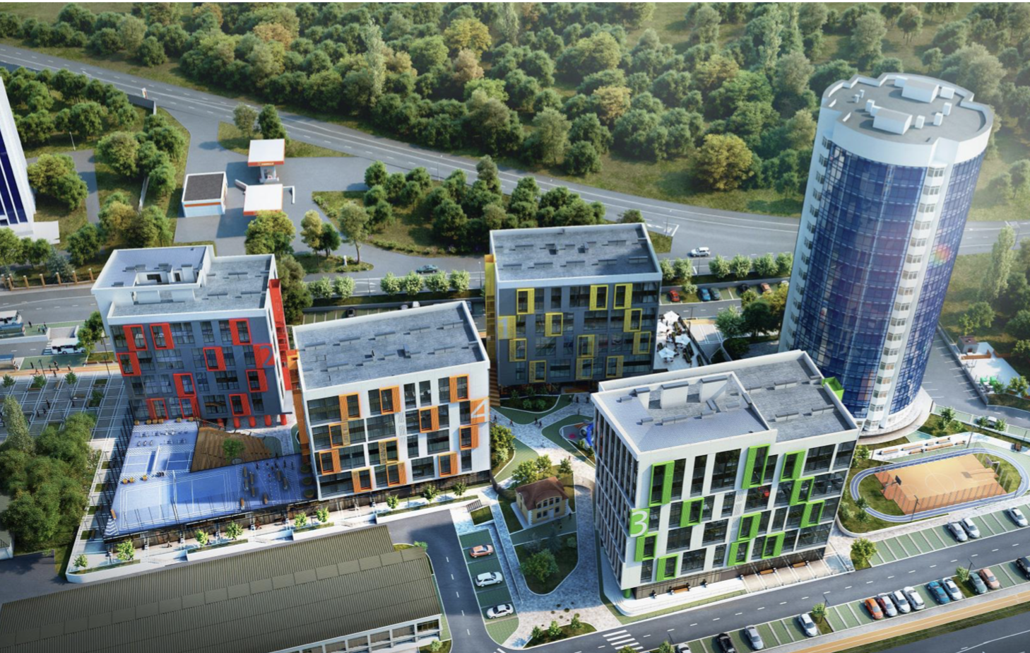 На первом этапе строительства предусмотрено возведение трёх жилых домов: