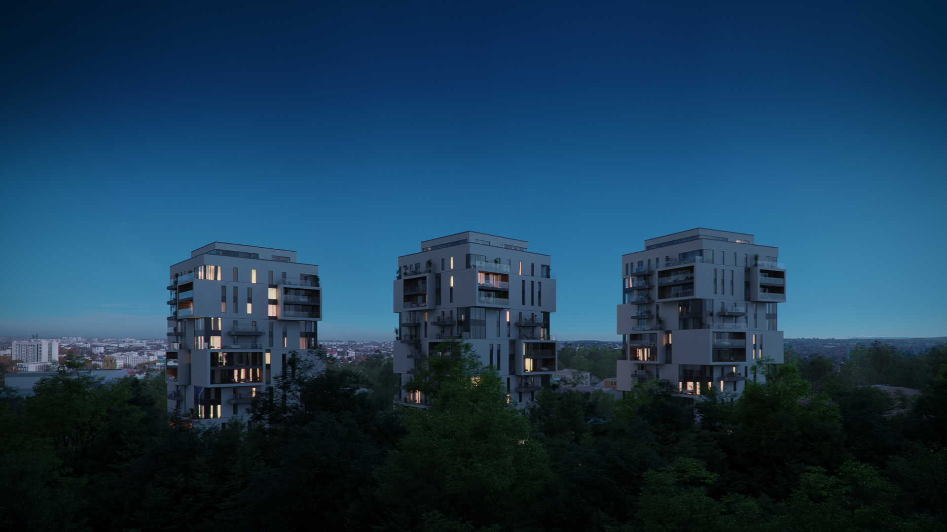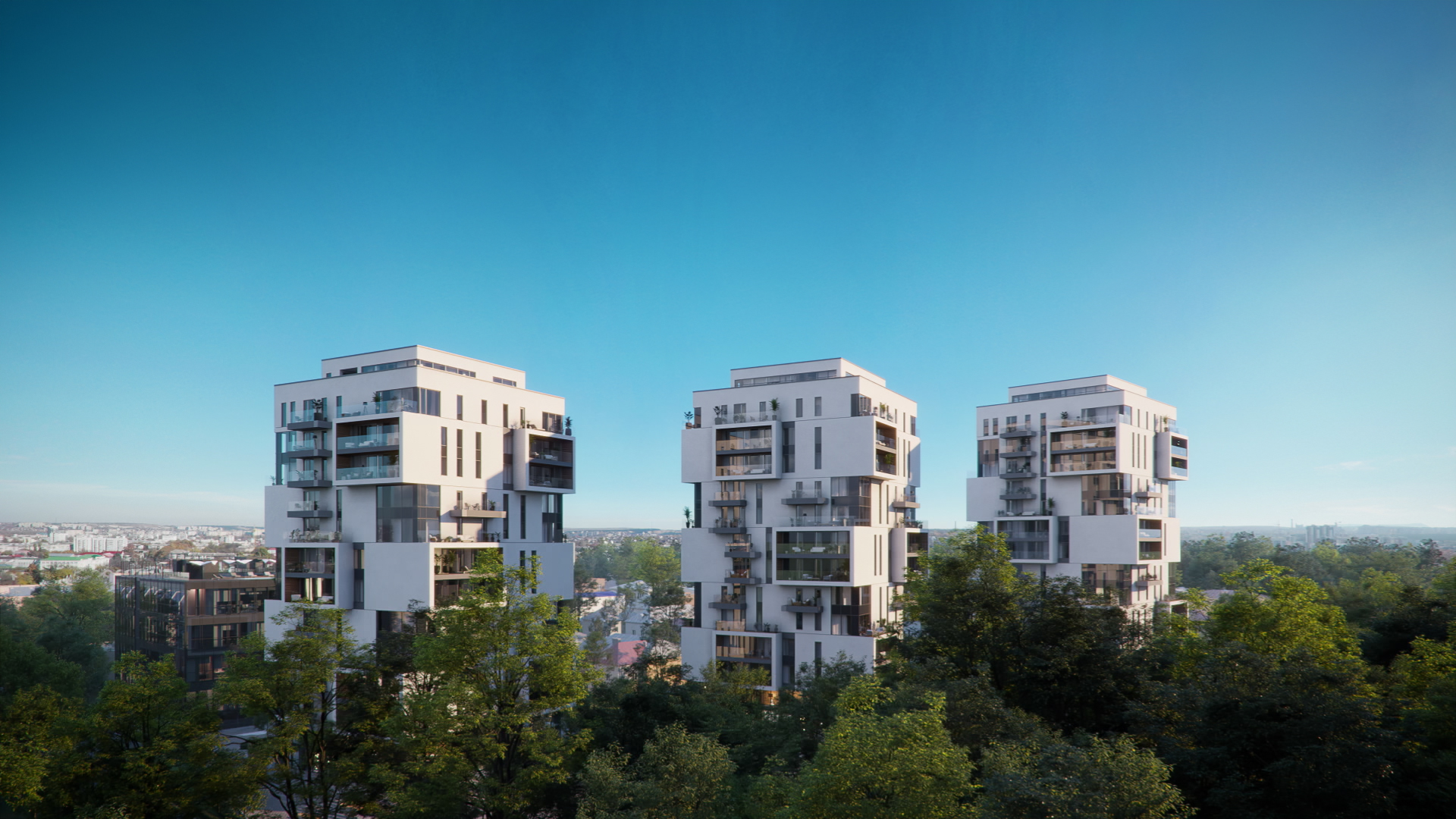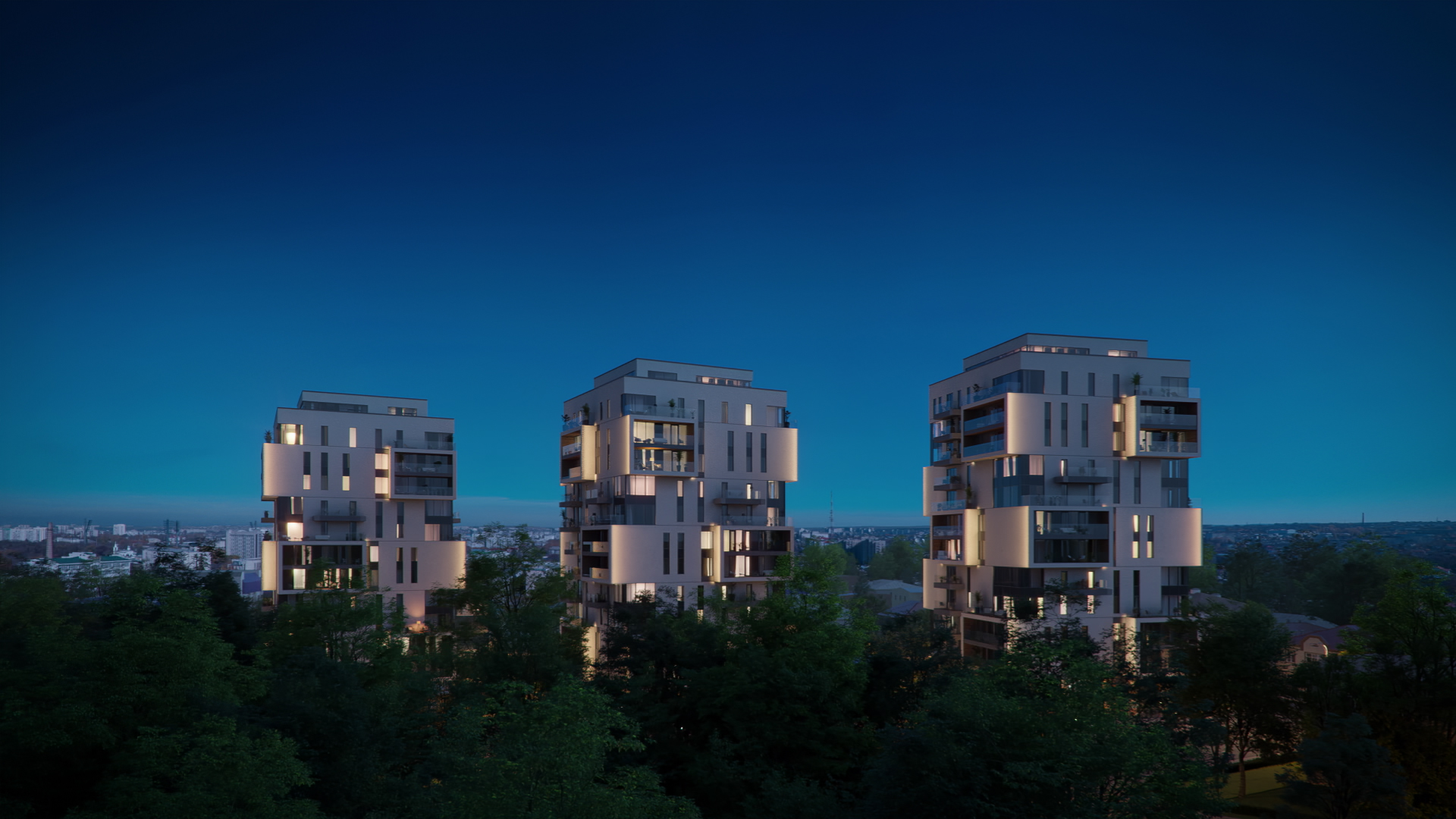 Квартал “Миндаль” состоит из трех домов высотой 16 этажей, объединенных функциональным безбарьерным дворовым пространством без машин.