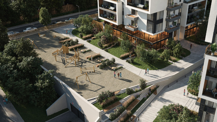 Для детей спроектированы современные игровые и спортивные площадки. Для взрослых - места для тихого отдыха и общения.